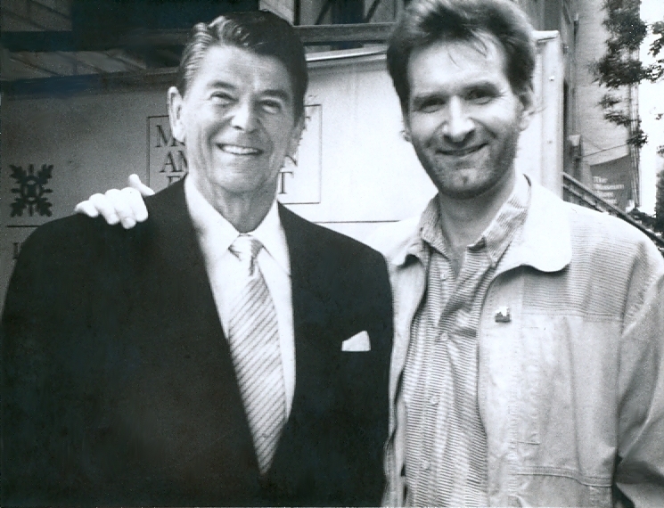 This picture cost me 3 dollars from a street vendor in New York with a cardboard cutout. It was taken in 1985 as I was in the early stages of planning Looney Tunes, my setting of the words, speeches, asides and gaffes of President Ronald Reagan, for double quartet (vocal and string) with keyboard sampler and electronics. Weeks previously, on the day the Americans bombed Tripoli, Reagan had been on the TV news justifying that atrocity. He actually called Gaddafi and his people 'these looney-tunes'. I grabbed my recording Walkman (the same one as for Lady Lazarus) just in time to capture him saying 'I warned them – I meant it'. That recording, made on cassette tape from a TV loudspeaker, is the sample you hear at the end of Looney Tunes: it's the only time Reagan's actual voice is used. Later, early in 1986, I visited the Federal Library in Minneapolis to research Reagan's utterances. In this place they keep a record of every word spoken by every President while in office – not just speeches and press conferences, but every aside, every request for a glass of water, every cough. I waded through this morass for two days to glean my texts. |