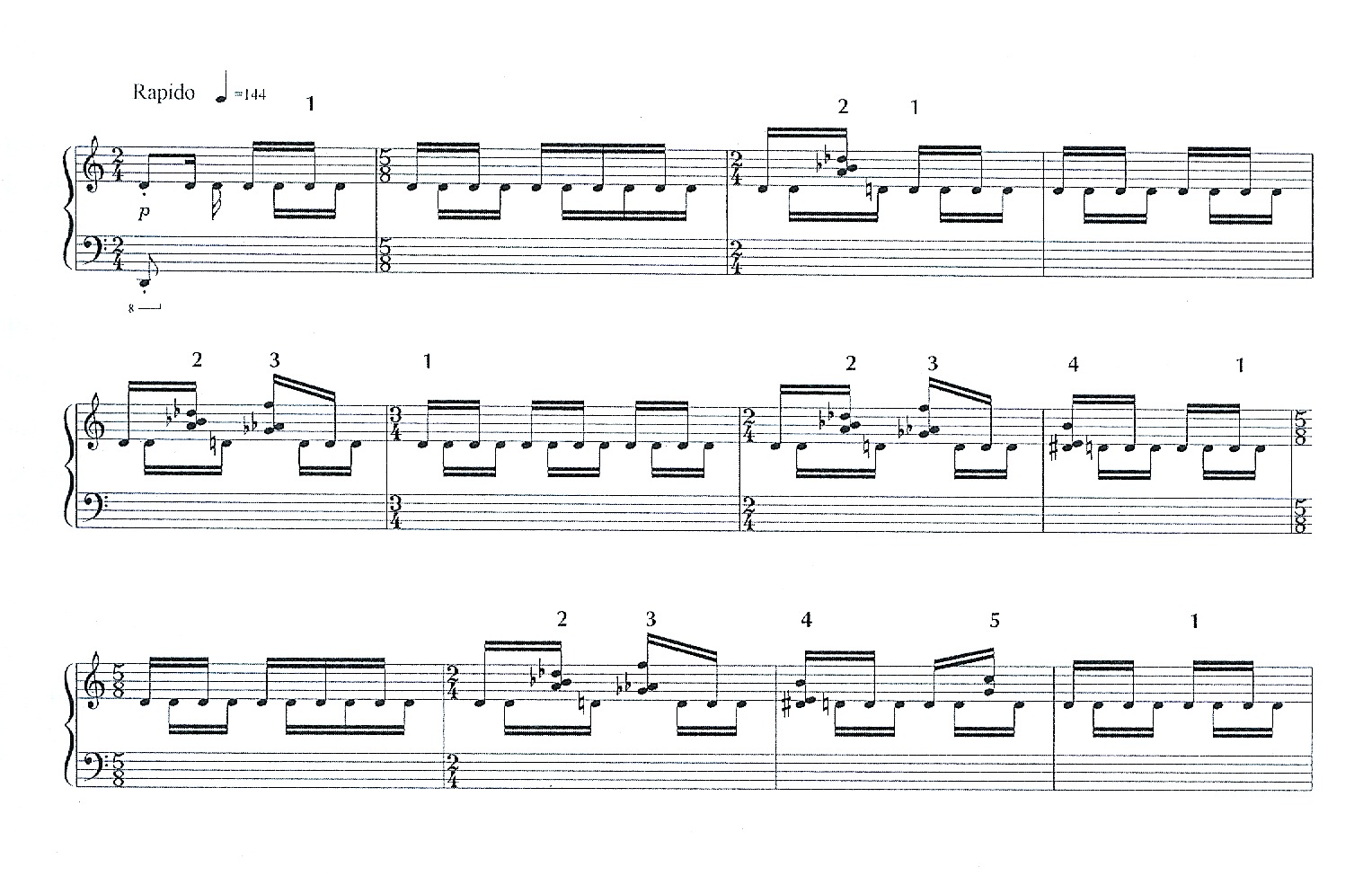 (1995) Prelude 1 (pole note D: a 'pole note' is like a key-note) is a moto perpetuo in ABA form. The first A