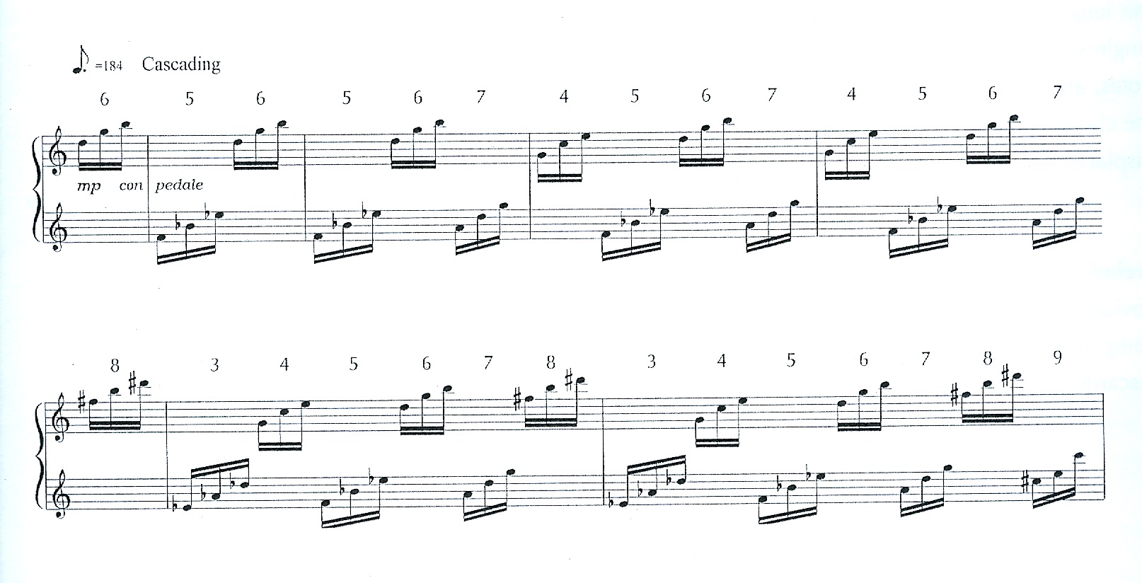 hands into two unconnected streams of music. The lower stream (left hand) is a